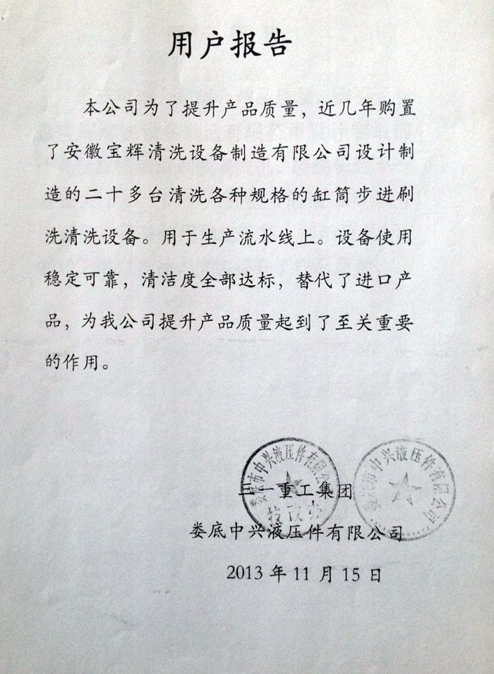 關鍵詞:用戶報告  發(fā)布日期:2015-03-05  來源:安徽寶輝清洗設備制造有限公司