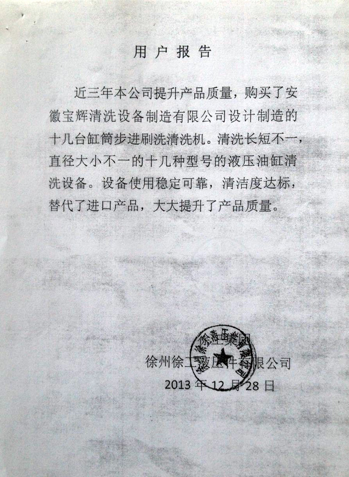 關鍵詞:徐州徐工液壓件有限公司用戶報告  發(fā)布日期:2015-03-05  來源:安徽寶輝清洗設備制造有限公司
